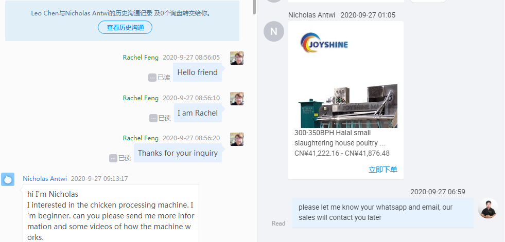 In September 27, received a inquiry from a Ghana customer about chicken slaughter machine. In October 24, customer payed the 50% deposit for a semi-automatic chicken slaughter line for 300-350 chicken per hour. The slaughter line includes stunning machine, bleeding machine, automatic scalding and machine, plucking machine, eviscerating table, cutting machine, operation tables, vacuum package machine.