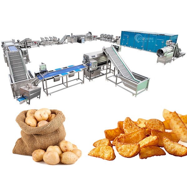 This potato wedges processing line is designed for medium to large-scale food factories, with a production capacity ranging from 300 kg to 2000 kg per hour. It covers the full process from washing, peeling, cutting, blanching, air drying, frying, de-oiling, freezing to packaging. The line is highly automated, stable in operation, and customizable to meet specific needs. It is suitable for processing potatoes, sweet potatoes, cassava, and other root vegetables.- Description