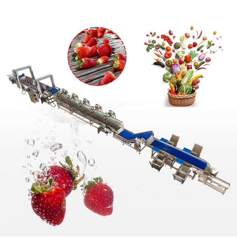 The strawberry washing line can be customized from 100 to 5000kg/h, suitable for fruit and vegetable processing of different scales.