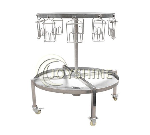 Semi-automatic eviscerating/gutting device is a kind of machine to deal with chicken quickly.It has rotated round plate so that people can be easy to operate. And it equips with moveable wheels.The wheels can be blocked. On the top of the machine there are 10 hooks on the plate. It is used for hanging the chicken feet. When we begin slaughtering chicken, flood falls into the bottom plate.Then hanging chicken head we can do eviscerating work.Then put the viscera into the discharging ourlet in the middle of round plate. Finally, the process ends.